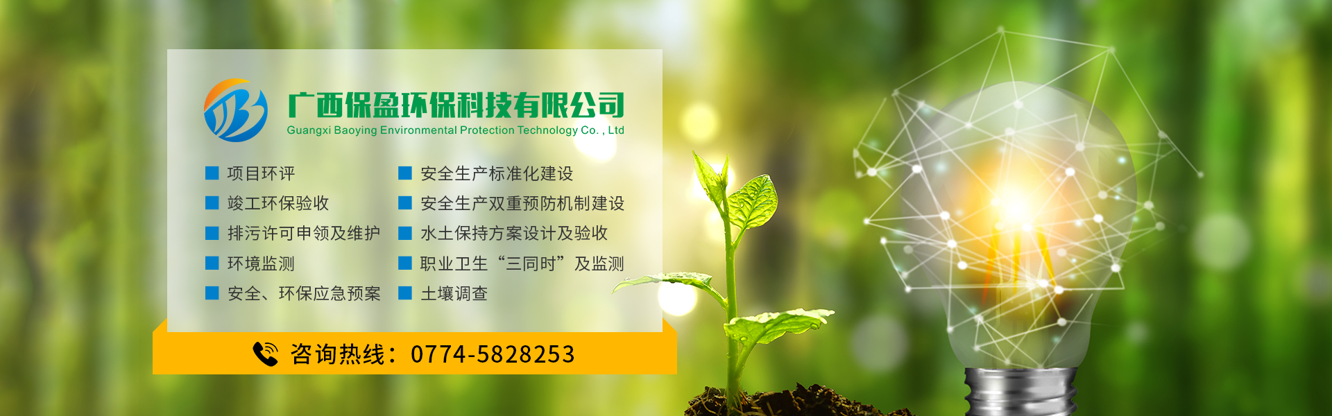 廣西保盈環保科技有限公司是一家專門從事生態環境、安全生產、水土保持技術服務的科技型企業。公司憑借精準服務,攜手共贏的理念,在項目環評、環保竣工驗收、排污許可、安全生產、水土保持技術服務及環保管家服務與社會各界有著廣泛的合作與交流...